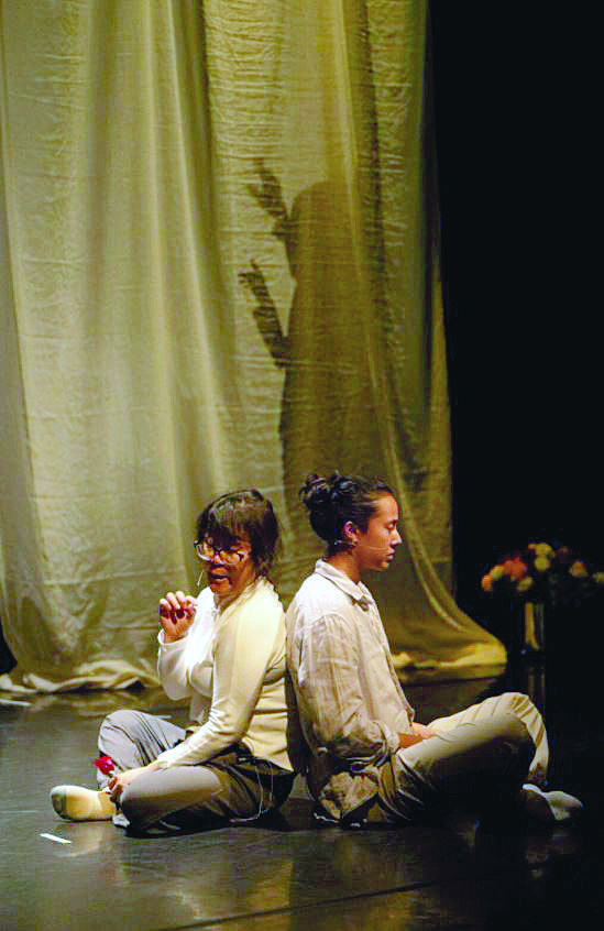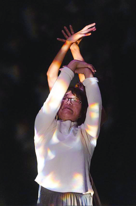 法鲁克和余秀华合作诗歌舞蹈剧场作品《万吨月色》,试图把诗里的“阴影”意象转化成某种新鲜的舞台象征——让诗人在光与暗交错的空间里跳舞,在不同尺寸的“阴影”下舞蹈,表达不同生命阶段对“阴影”的感受。(均受访者供图)