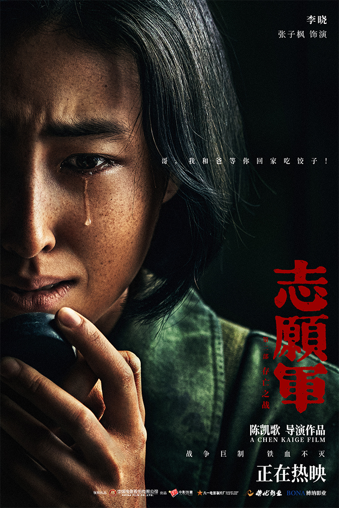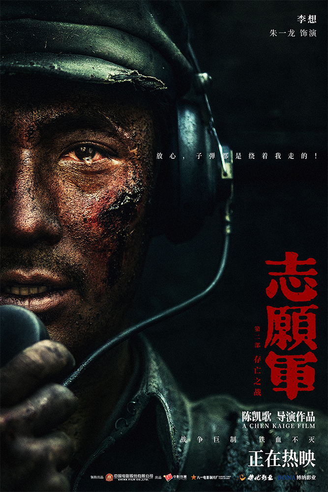 电影《志愿军:存亡之战》由中国电影股份有限公司领衔出品,中影创意(北京)电影有限公司、八一电影制片厂、北京荣优影视文化传媒有限公司、北京博纳影业集团有限公司出品,陈凯歌执导,正在全国热映。
