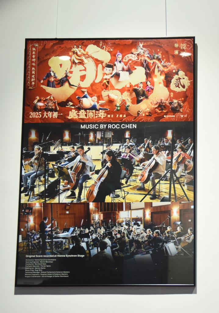这是3月27日在位于奥地利维也纳的“维也纳同步舞台”音乐制作中心拍摄的《哪吒2》海报。新华社记者 贺灿铃 摄