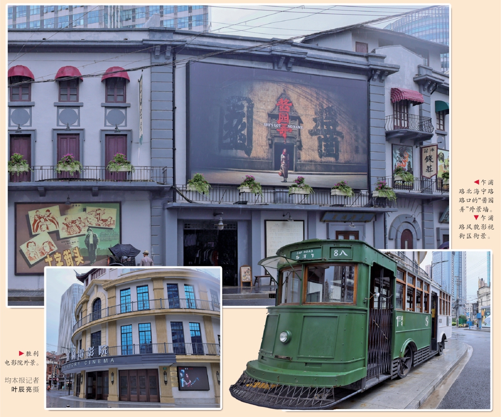 出于安全考量,电影的外景在去年6月底悉数拆除。无法打卡“明星同款”,许多市民游客不无遗憾。好在,不久后,一座复原了上世纪三四十年代风貌的街区原地“换装”。更新改造后的乍浦路风貌影视街区用“修旧如旧”亲近历史,依托胜利电影院和不远处的海派文化中心传承文脉。与此同时,椿方圆面馆、对印茶局、蒋掌柜排骨年糕、杜哈夫甜品、文创雪糕等店铺,在年代感十足的“妆造”中相继入驻,带着烟火气,也带来了经济效益。