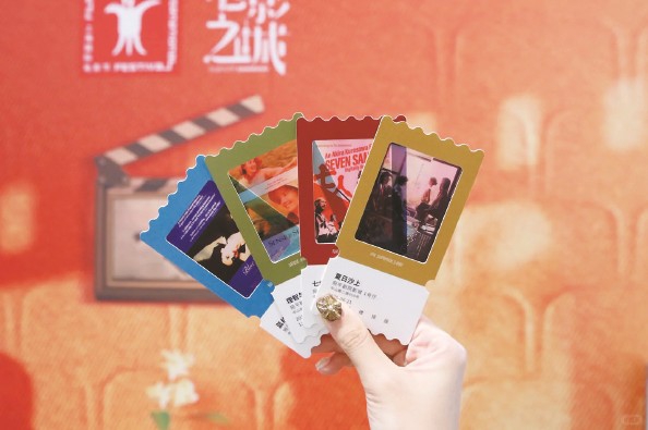 除了复古票根,曹杨影城还推出了纪念章,有影展的电影章,也有影城的建筑章,吸引了大量影迷前来。手绘的透卡,站在影城对角的信号灯下,可以拍出从银幕走向生活的艺术感。