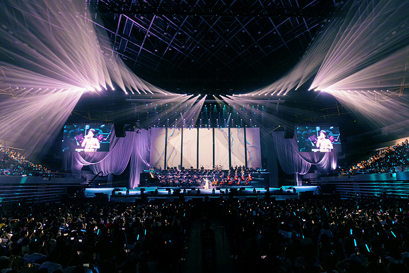 这场交响限定演唱会是杭州奥体中心体育馆自2021年竣工投入使用以来,首次迎来国内两大著名交响乐团同台献艺。通常交响乐演出场馆基于欣赏习惯和声场等多方面的要求,通常都是在3000名观众以下的规模,而杭州奥体中心体育馆则是有18000个固定座位的大型场馆,通常更适合举办流行歌手的大型演唱会,这一次将流行歌手演唱会与交响乐演奏会融为一炉,其技术难度与突破性,可见一斑。