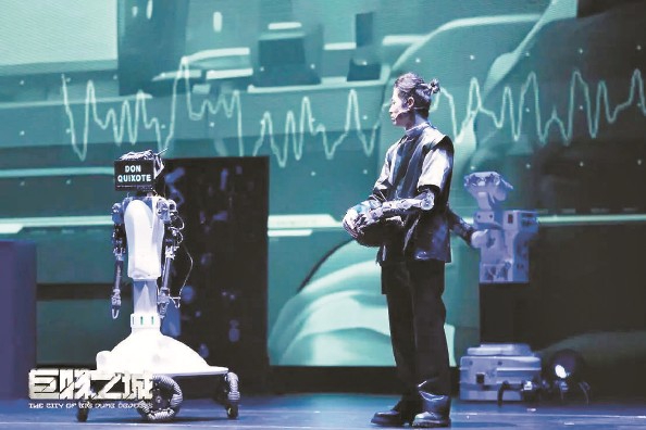这是国内首部机器人戏剧《巨物之城》的演出现场。演员与机器人一同完成了80分钟的表演,谢幕后,台下观众涌上舞台,争相与“堂吉诃德”“麒麟臂”“岚”等机器人合影、问好。机器人——这个在日常生活中还颇为“遥远”的形象,第一次以情感表达者的身份,走近了普通观众。