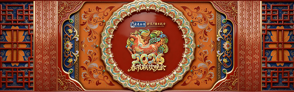 伴随LOGO一同亮相的,是春晚的主视觉。该设计紧扣“丙午马年”所蕴含的奋进与吉祥之意,深入萃取景泰蓝、漆器、木雕等非遗技艺的美学精髓,并将其创新转化为富有当代感的视觉语言。画面中央,国潮风格的奔腾骏马与流转的祥云、绵延的缠枝莲等经典纹样巧妙融合,形态灵动而寓意深远。色彩上以象征喜庆团圆的朱红、昭示灿烂辉煌的鎏金作为主调,其间点缀宝蓝之沉稳、石青之清雅,共同织就一幅既浓烈欢腾又典雅庄重的节日画卷。