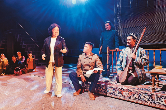 无论是《汉口茶港》中茶商抗日的英雄气概,《奥涅金》中对真挚爱情的永恒追求,还是《原野》中对人性复杂性的深刻揭示,她的作品总能在具体故事中提炼出超越时代的价值。而对于《木卡姆恋歌——万桐书》,她更看重作品在铸牢中华民族共同体意识方面的现实意义,“无论从当年万桐书先生到新疆抢救木卡姆,还是我们剧组本身,我的执行导演是维吾尔族,演员队伍也是多民族的,整个剧组就是一个大家庭。”