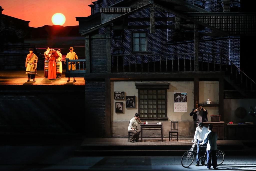 1月28日晚,在甘肃黄河剧院,甘肃省话剧院演员在话剧《青青的阿万仓》中表演。新华社记者 郎兵兵 摄