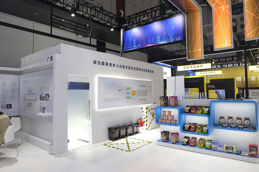 在11月5日至10日的第四届中国进口博览会上,深圳市怡亚通供应链股份有限公司旗下香港子公司——联怡国际(香港)有限公司亮相服务贸易展区,全面展示怡亚通服务的进口品牌与国代品牌产品。图为怡亚通—联怡展示区。