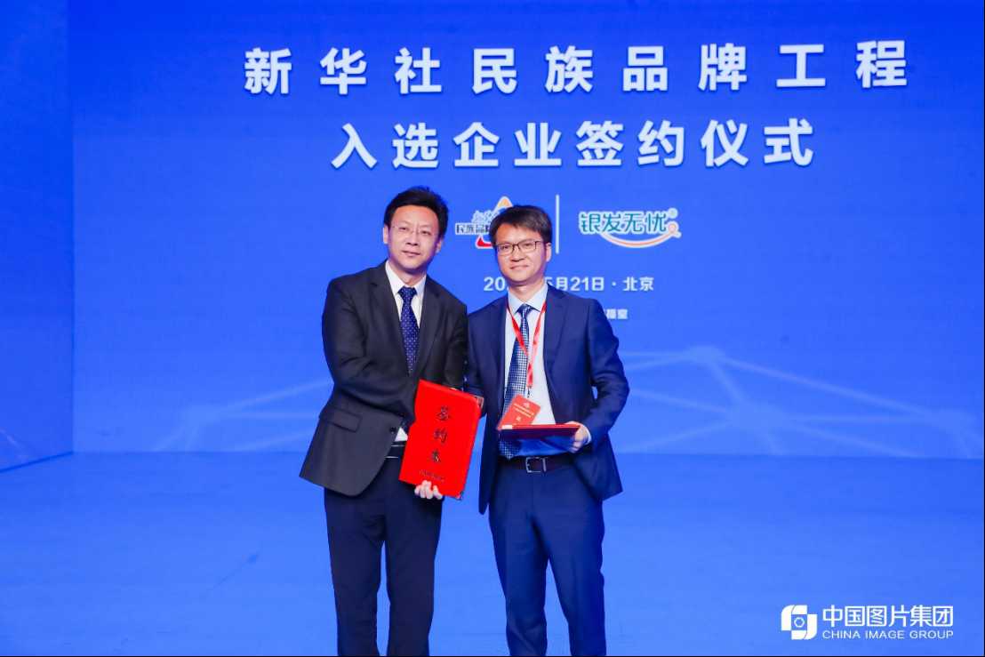 ↑银发无忧入选新华社民族品牌工程签约仪式现场合影