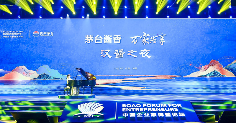 新华网博鳌12月3日电 椰风碧影,贤集南国,12月3日,“茅台酱香 万家共享”汉酱之夜在博鳌盛大举行。