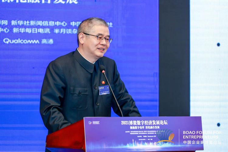 新华网博鳌12月3日电(谷雨) 2021中国企业家博鳌论坛12月2-5日在海南博鳌举行。论坛期间,“拥抱数字变革 深化融合发展——2021博鳌数字经济发展论坛”于3日举行。论坛邀请各界嘉宾围绕数字经济相关话题深入交流,为促进数字技术与实体经济深度融合,赋能传统产业转型升级,做强做优做大我国数字经济碰撞思想火花,携手共担数字时代责任,共促数字经济繁荣健康发展。