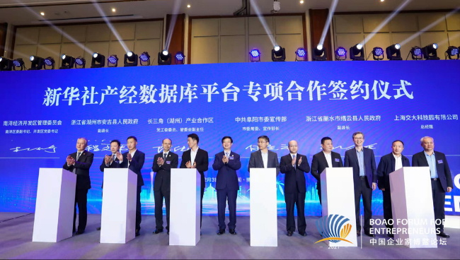 2021中国企业家博鳌论坛“新华社产经数据库平台专项合作签约仪式”现场