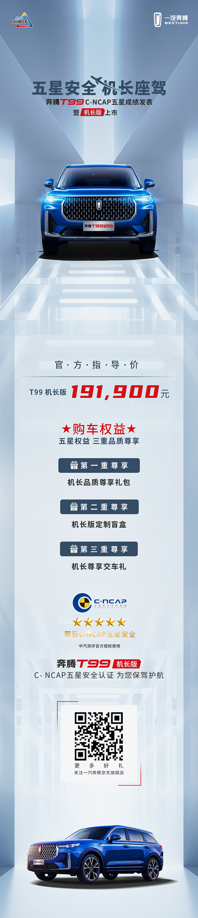 售价19.19万元 一汽奔腾T99机长版正式上市