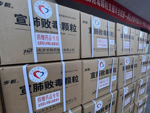 今年春节前夕,北京丰台区等地出现疫情,医护人员加班加点开展工作,为控制疫情付出艰苦努力。为支持医护工作者,由中央统战部指导的大型医疗公益项目“同心·共铸中国心”项目组委会(以下简称“组委会”)春节前积极协调步长制药加班生产“宣肺败毒颗粒”,以便尽快捐赠给医务工作者、用于日常防治新冠病毒。该药物是中国工程院院士张伯礼等医学专家于2020年武汉抗疫期间研发出的药品。