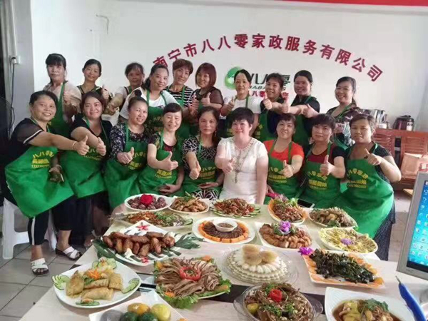 随着人民生活水平的不断提高,家政服务已经成为家庭刚需,许多家庭需要更科学化、复合式的家政服务。为了提升家政人员的服务技能,为广大雇主提供更优质的服务,从2017年5月开始至今,“八八零家政”每周日定期举办“厨艺交流课”活动,特别聘请专业老师教阿姨们做面点包子馒头及特色菜等佳肴,目前已经连续开课200多期,几乎期期满员,共培训了4000多名学员。因为现场教学的方式,理论和实际相结合,阿姨们能够亲自动手,加深了教学记忆。培训出来的学员在雇主家服务时也得到雇主的好评。2017年8月,公司有3位学员入选广西电视台公共频道“美妈私房菜”节目组,拍摄自己现场制作的美食。