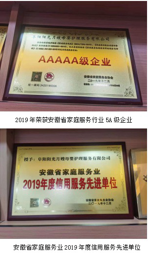 企业在任翠芬的带领下所获殊荣不断,2019年荣获安徽省家庭服务行业AAAAA级企业、安徽省家庭服务业2019年度信用服务先进单位、2020长三角家政服务百强企业、2020年荣获阜阳市商务局评选家政行业“诚信示范店”称号、2021年企业被安徽省发改委、省商务厅遴选为家政领域省级重点联系企业,任翠芬被评为长三角金牌家政员。