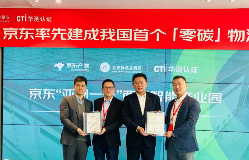 北京绿色交易所和华测认证(CTI)向京东产发颁发碳中和认证