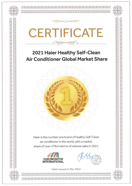 3月17日,世界权威调研机构欧睿国际公布2021年全球空调市场地位声明,相关数据显示:在全球销量排行榜上,海尔互联空调(包括智能空调)占比超过33%,第6年位居全球第一;海尔健康自清洁空调所占市场份额超过47%,第4年居全球第一;海尔空调荣获中国家用空调自主品牌海外销量第一。