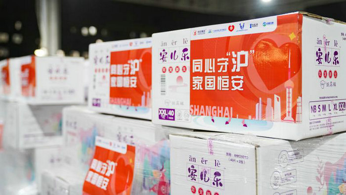 14日,部分物资已抵达上海。据悉,这批物资包括了“七度空间”卫生巾、“安儿乐”婴儿纸尿裤以及“安而康”成人尿裤,主要提供给防疫一线女性医护人员和隔离区的婴幼儿。