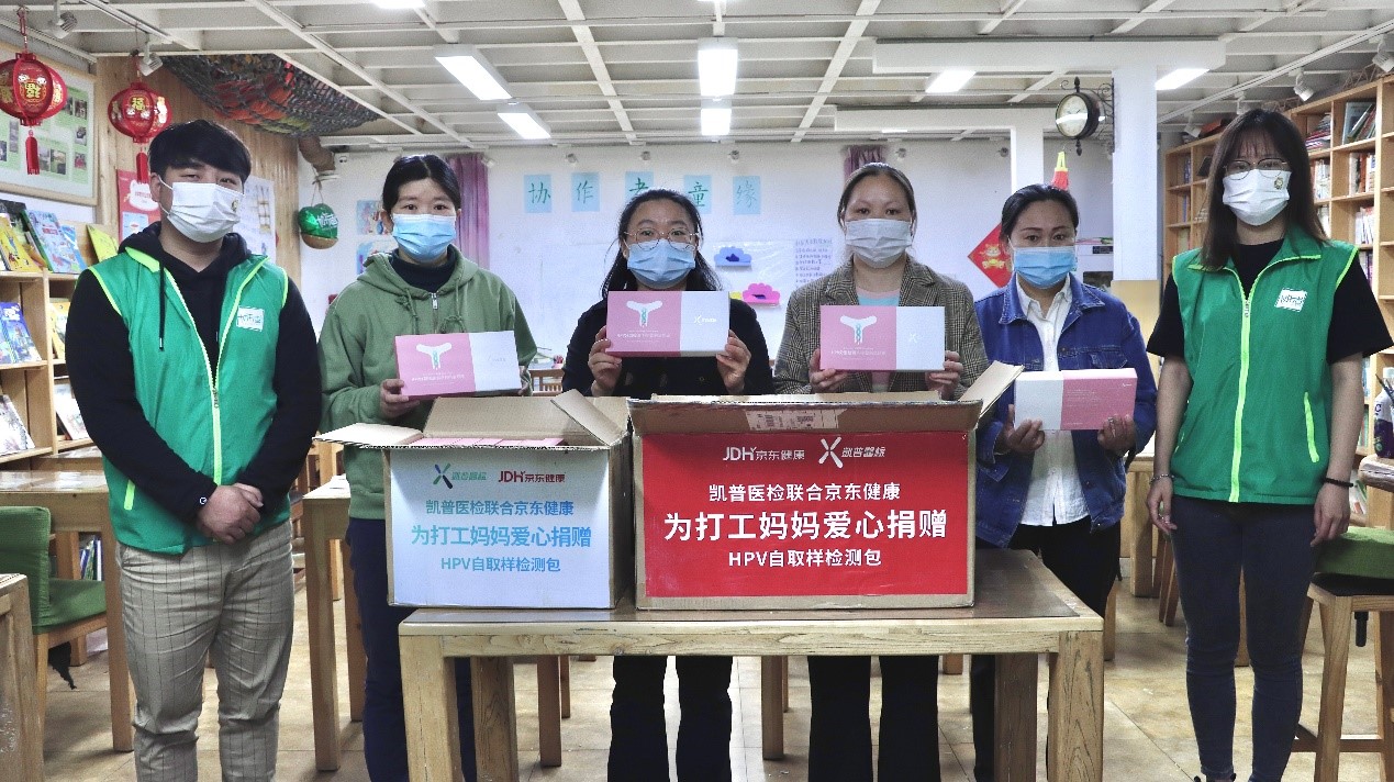 在关乎女性健康的“两癌”筛查方面,国家自2009年起启动农村妇女“两癌”免费检查项目,而在城市开展的“两癌筛查”活动,一般面向本地户籍居民,较少覆盖到城市务工的流动妇女人群。调查显示,84.24%的打工妈妈没有参加过城市/农村组织的免费“两癌筛查”活动。为此,本次打工妈妈健康关爱行动期间,京东健康联合凯普医检向妈妈们捐赠HPV自检产品,让妈妈们居家就能尽早发现自身是否有HPV感染,做好宫颈癌预防。让妈妈们在享受专业精准体检的同时,了解早防早筛对预防宫颈癌的重要性,提高妈妈们健康意识。