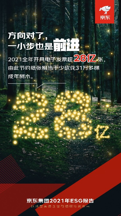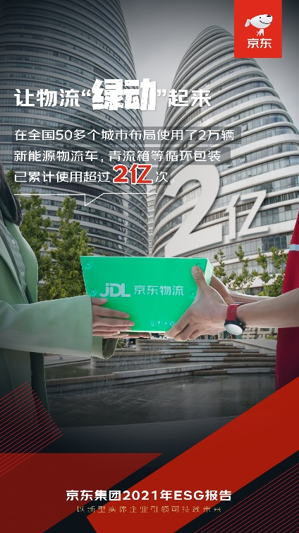 在推进减碳技术创新方面,2021年京东物流在海口市进行循环包装试点项目,通过投放循环快递袋探索逐步减少使用一次性PE塑料包装袋,截至2021 年底,青流箱等循环包装已累计使用2 亿次,并带动全行业减少一次性包装用量近100 亿个;通过全面推进电子发票开具,2021 全年京东开具电子发票超28亿张,由此节约纸张相当于少砍伐31万多棵成年树木;借助液冷等技术,京东云新一代绿色数据中心已实现全年运行年均电源使用效率(PUE)低于1.1,基础设施能耗节省30%,碳排放总量减少10%。今年京东618期间,京东将继续联合多家品牌、商家推出全新的“青绿计划”,给节能家电、绿色食品等商品打上“绿色”标签。