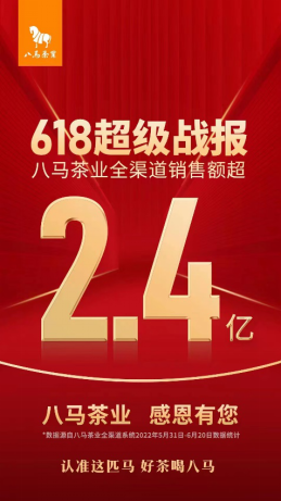6月21日,八马茶业发布“618”全渠道战报:2022年“618”期间,八马茶业全渠道销售额超2.4亿元,同比增长36%;此外,白毫银针·君子雅集单品销售额超1000万元,成为八马“618”期间的爆款“千万单品”。