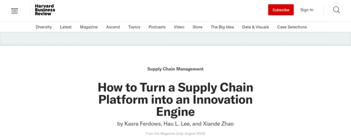近日,被誉为“管理界圣经”的《哈佛商业评论》英文版刊登题为《如何将供应链平台转变为创新引擎》(How to Turn a Supply Chain Platform into an Innovation Engine)的文章。美国乔治城大学教授Kasra Ferdows、斯坦福大学教授李效良及中欧国际工商学院教授赵先德以海尔集团和卡奥斯COSMOPlat为典型案例,对企业数字化供应链平台的建设、应用和创新价值等进行了分析和研究。
