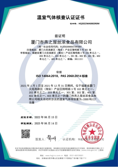 近日,燕之屋荣获“产品碳足迹认证证书”与“温室气体核查认证证书”,这标志着燕之屋在践行 “碳达峰、碳中和”目标上迈出了实质性一步。