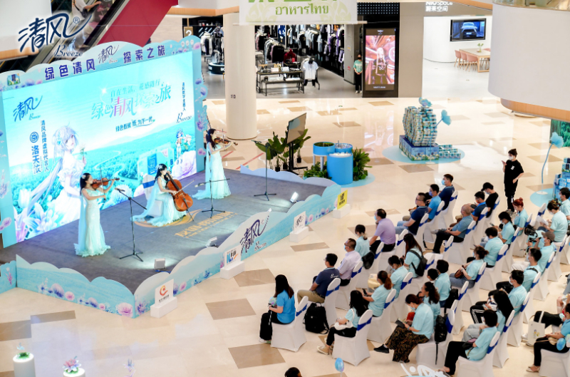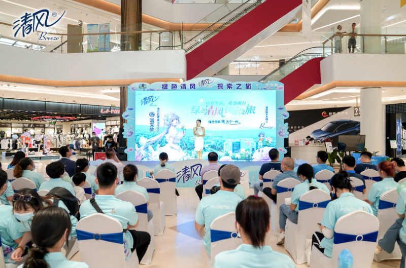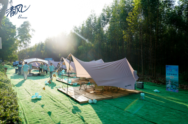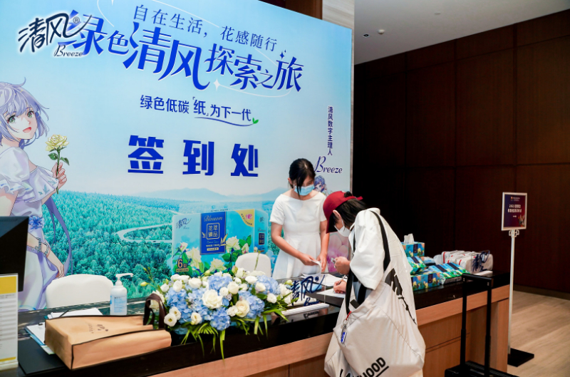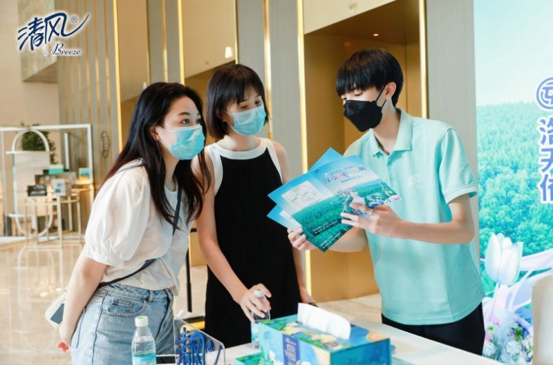 近日,清风发起绿色清风探索之旅活动,邀请消费者走进清风林场,体验绿色低碳生活。图为“绿色低碳家族”打卡清风快闪店。pagebreak