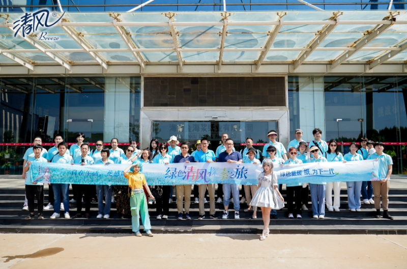 近日,清风发起绿色清风探索之旅活动,邀请消费者走进清风林场,体验绿色低碳生活。图为“绿色低碳家族”于清风纸浆厂前合影留念。pagebreak