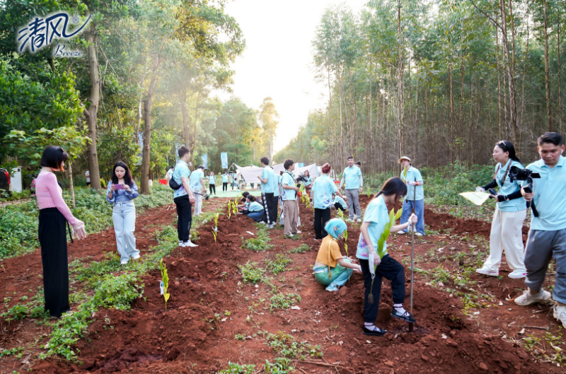 近日,清风发起绿色清风探索之旅活动,邀请消费者走进清风林场,体验绿色低碳生活。图为嘉宾共种一颗清风树。pagebreak