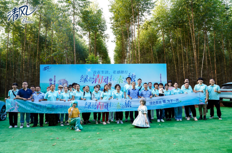 近日,清风发起绿色清风探索之旅活动,邀请消费者走进清风林场,体验绿色低碳生活。图为“绿色低碳家族”相聚清风自有人工林场。pagebreak