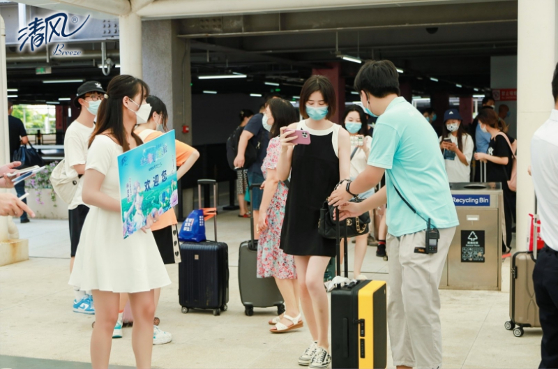 近日,清风发起绿色清风探索之旅活动,邀请消费者走进清风林场,体验绿色低碳生活。图为活动主办方安排在海口美兰机场迎接落地嘉宾。pagebreak