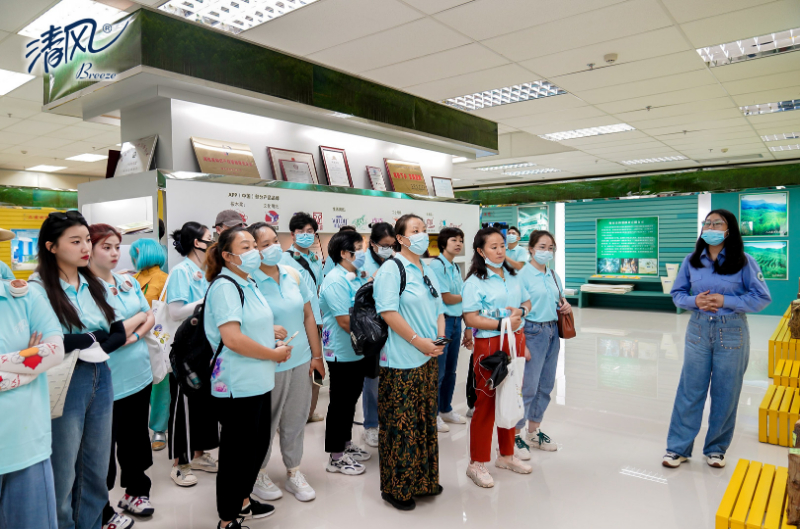 近日,清风发起绿色清风探索之旅活动,邀请消费者走进清风林场,体验绿色低碳生活。图为“绿色低碳家族”参观金红叶纸巾博物馆。pagebreak