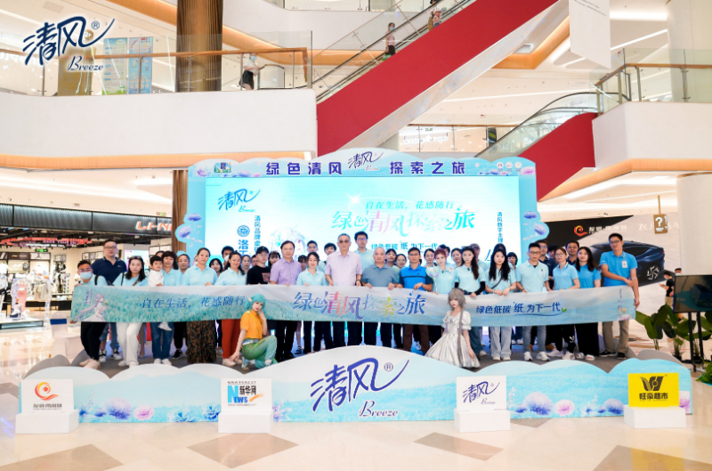 近日,清风发起绿色清风探索之旅活动,邀请消费者走进清风林场,体验绿色低碳生活。图为“绿色低碳家族”在清风快闪店共同宣读低碳宣言。pagebreak
