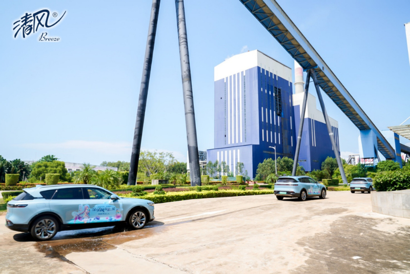 近日,清风发起绿色清风探索之旅活动,邀请消费者走进清风林场,体验绿色低碳生活。图为“绿色低碳家族”乘坐新能源汽车前往清风纸浆厂。pagebreak