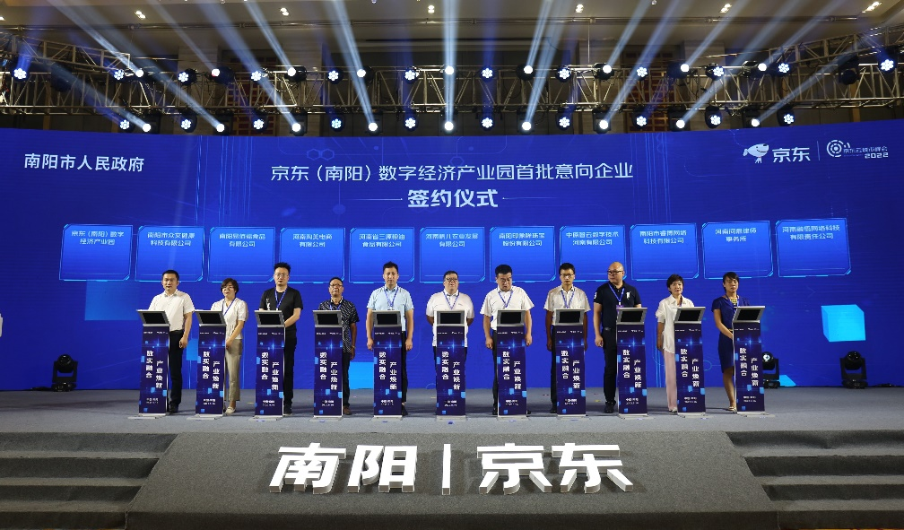 此外,南阳红都时代广场与京东零售联手将打造超大空间、海量商品的沉浸式场景体验;为推动“数字南阳”建设,京东(南阳)数字经济产业园与南阳理工学院范蠡商学院达成共建“大学生就业创业基地”意向,并与南阳市众艾健康科技有限公司、南阳易佰福食品有限公司等20家首批意向入园企业进行签约,南阳市将充分借力京东集团优势,推动南阳市传统产业转型及数字产业聚集,全面助推南阳加快数字产业化、产业数字化进程。