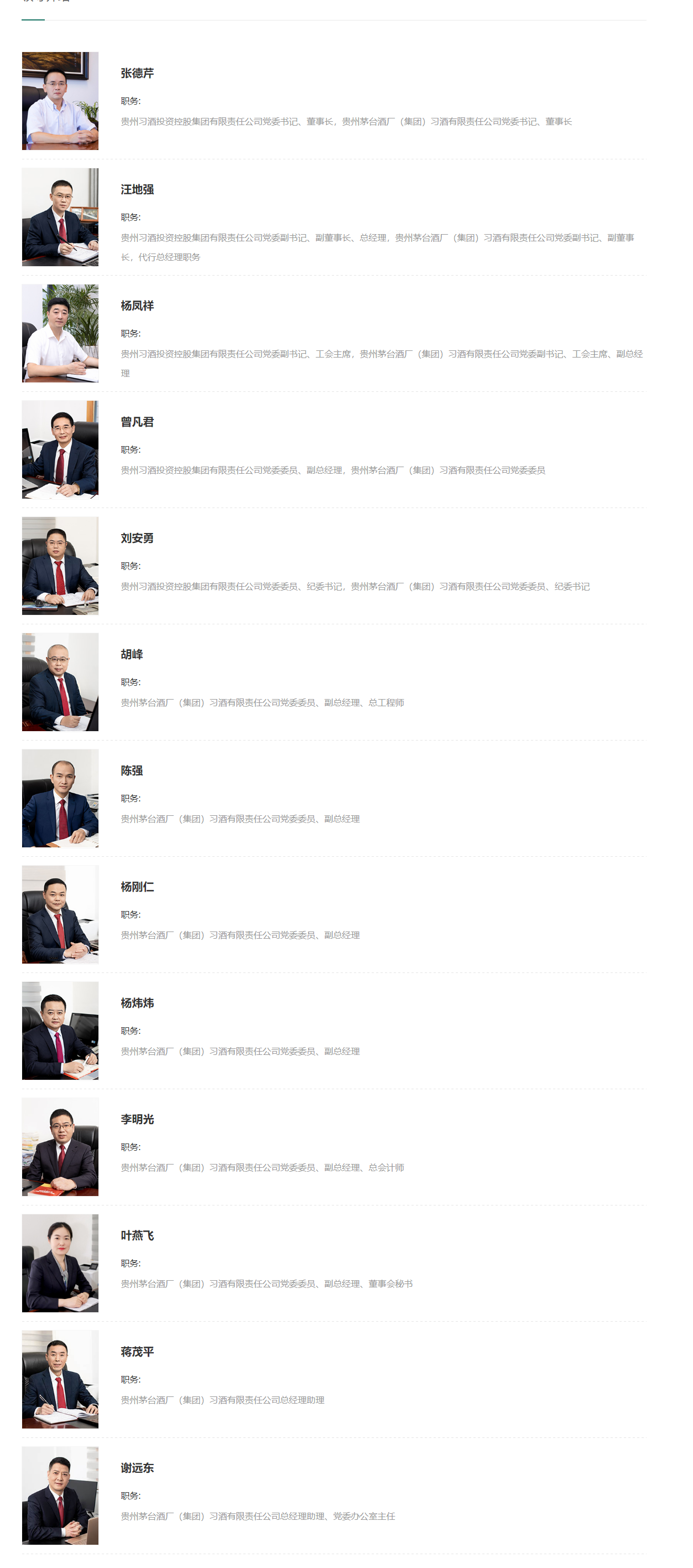 贵州习酒投资控股集团有限责任公司党委委员、副总经理,贵州茅台酒厂(集团)习酒有限责任公司党委委员