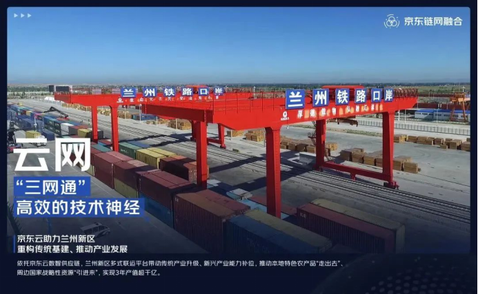 举例来说,西北首个国家级新区兰州新区,依托京东云数智供应链,通过构建高效、智能的多式联运产业平台,带动起当地传统产业升级、新兴产业能力补位,实现了本地特色农产品“走出去”、周边国家战略性资源“引进来”。实现了3年产值超千亿,夯实了其作为国内重要交通枢纽的地位,促进“一带一路”在西北更好地落地。