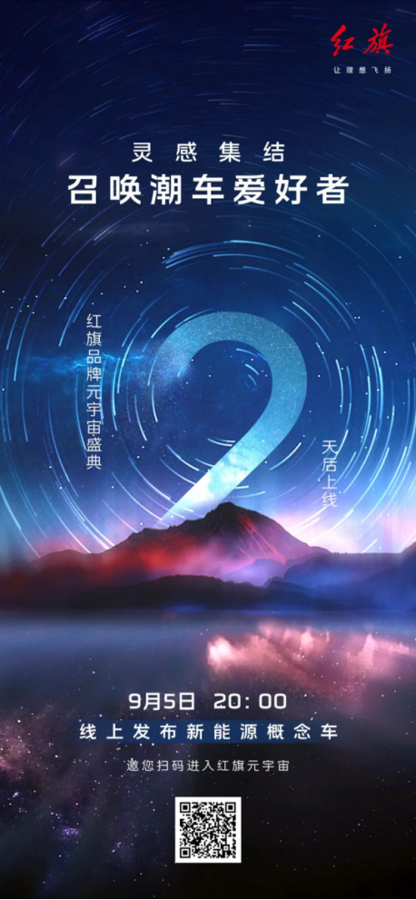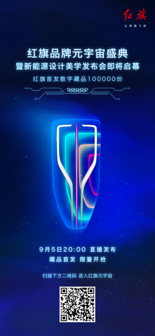 9月5日晚八点,2022红旗品牌元宇宙盛典暨新能设计源美学发布邀您品鉴。