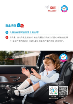 为了进一步普及儿童安全座椅相关知识,中国玩协、京东集团联合制作安全座椅安全消费QA知识卡片,并通过京东物流广告向京东母婴用户人群定向投放。卡片内容以趣味问答的形式,让更多应当配备儿童安全座椅的家庭及早了解其重要性,掌握正确选购和使用安全座椅相关知识,保障儿童安全出行。