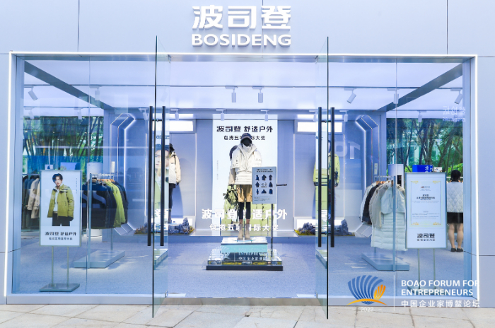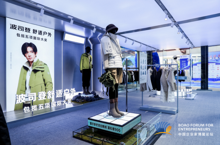 波司登此次特别推出的“新定义”国潮沉浸式体验馆全面升级,扩大了消费场景特性。作为唯一受邀的羽绒服品牌亮相,波司登在此次国潮体验馆中,向人们展示了旗下风衣羽绒服、舒适户外、高端户外、重新定义轻薄羽绒服等中高端创新产品及终端形象。其中,波司登在今年推出的新一代轻薄羽绒服是本次的展示的亮点之一,通过把卫衣、针织等与轻薄羽绒服的创新融合,同时独创式羽绒拼接、艺术化绗线设计,让经典与时尚、功能与美感有机结合。波司登风衣羽绒服全新升级回归,将羽绒服与风衣的优点特性揉为一体,并投入大量精力研发使用了两款创新定制面料——Pro-Proof面料和建筑剪影格纹面料,在版型、工艺、面料等方面实现三大升级,六大功能突破,不仅为消费者带来更实穿、更具美感的秋冬时尚御寒单品,亦再次证实了波司登羽绒服专家的全球领先地位。而舒适户外系列羽绒服,则为我们带来了户外场景穿着新体验。
