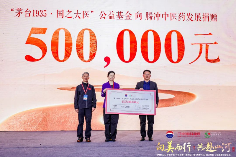 腾冲是著名的“云药之乡”。贵州茅台公益基金会、贵州茅台酱香酒营销有限公司、茅台1935酒全国经销商,联合中国医药卫生事业发展基金会在活动现场共同发起成立“茅台1935·国之大医”公益基金,并向中国医药卫生事业发展基金会捐赠1000万元,旨在发扬光大中医药文化传统,为中医药基因的保护、中医药事业的传承创新发展。