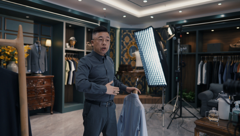 截至目前,已经有近150万粉丝看过老罗在装饰得古色古香的直播间里“下蹲拉伸”,全方位展示衬衫的服帖与舒适。