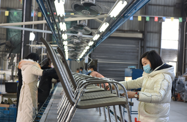 平舆县户外休闲产业园生产线上,工人正在赶制订单