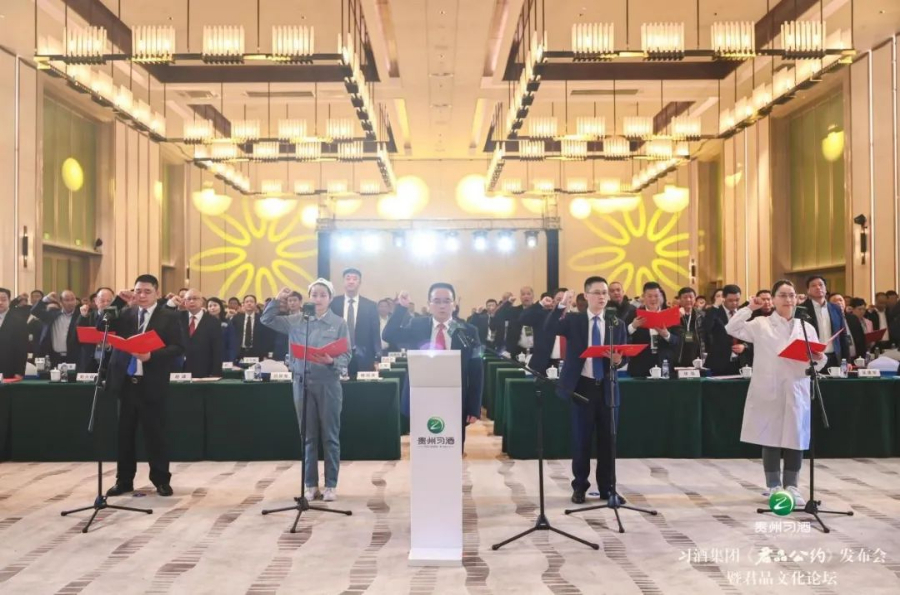 河南大学文学院教授、著名文化学者王立群,北京大学中文系教授、著名文化学者张颐武,南京师范大学文学院教授、中国古典文学学者郦波,贵州省作家协会主席、省文联主席欧阳黔森,习酒集团党委书记、董事长张德芹,党委副书记、总经理汪地强,党委副书记、工会主席杨凤祥,党委委员、纪委书记刘安勇,习酒股份公司领导班子成员、总经理助理,“习酒·我的大学”爱心使者,“习酒·吾老安康”发起人代表,习酒全国各经销商联合会负责人、供应商代表、全国各大媒体及习酒员工代表齐聚一堂,共同见证《君品公约》发布,共绘习酒文化蓝图。