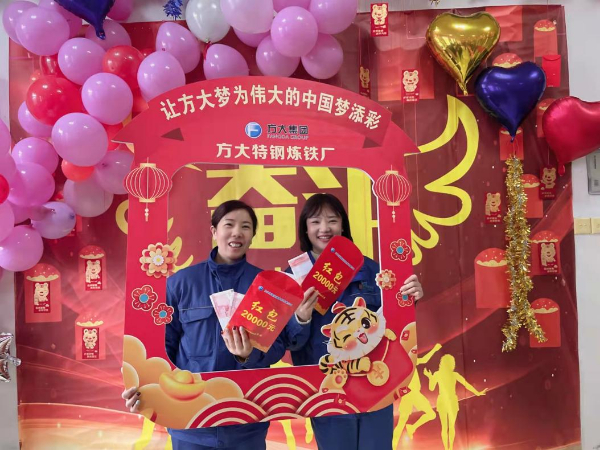 “这张图片是方大特钢退休劳模郭和根一家2019年春节领红包的幸福场景,当年员工每人发放6万元现金红包,退休员工发放5000元红包,他们祖孙三代7人全在方大特钢,所以共计拿到42.5万元大红包,过了一个满满的幸福年!”自2009年改制以来,方大特钢已累计发放现金红包总额达11.4亿元。娓娓道来的方大特钢员工幸福故事,让与会人员感叹不已。