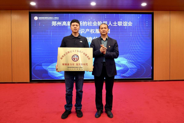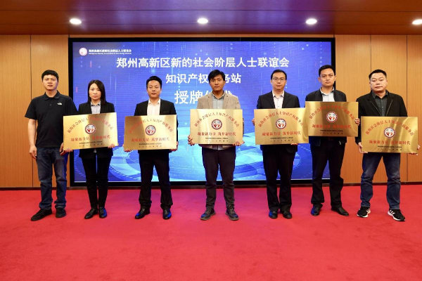 活动现场,郭广立为“郑州高新区新的社会阶层人士联谊会知识产权服务团”进行授牌;李培胜为郑州浩德知识产权代理事务所、河南浩之德信息科技有限公司、河南知一知识产权代理有限公司、河南道本网络科技有限公司、河南双翼律师事务所、河南晟海律师事务所6家单位颁发“郑州高新区新的社会阶层人士联谊会知识产权服务站”牌匾;会上还宣读了首批“郑州高新区新的社会阶层人士知识产权专家库”名单,杨晴为解金辉、陈帅甫、武卫、叶世阳、朱帅权、白洁、丁彦安、张幼林、张翼、江兰、丁巍、苏保莹等12位专家授聘书。