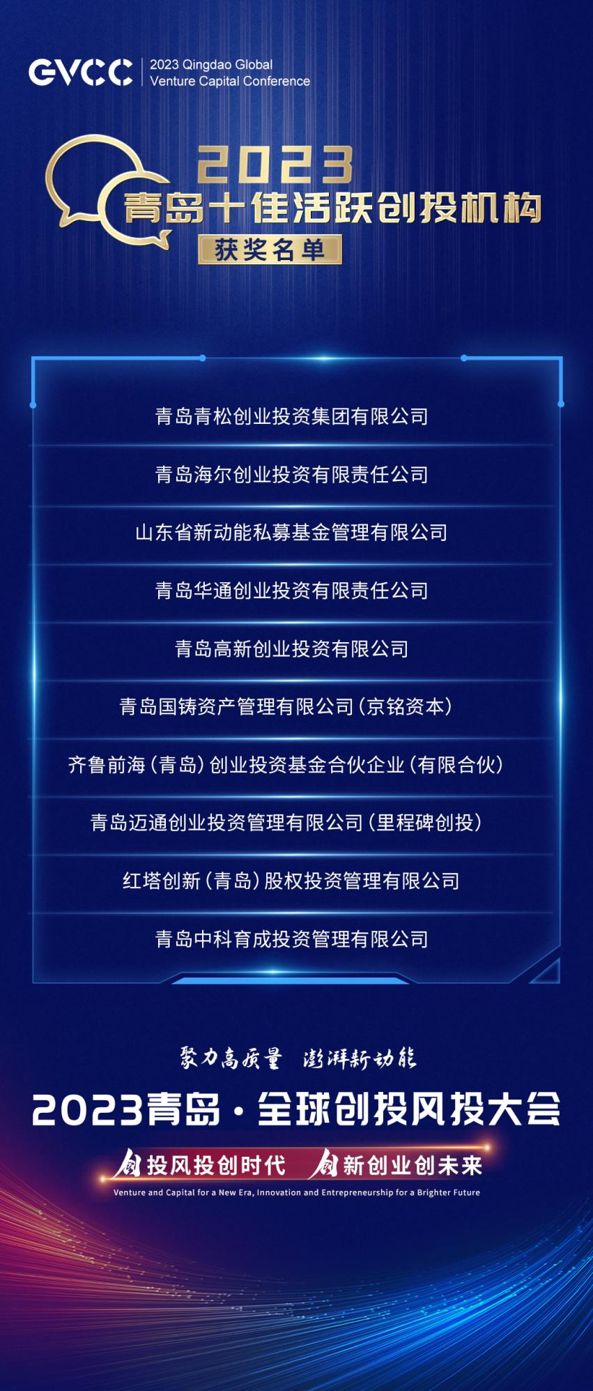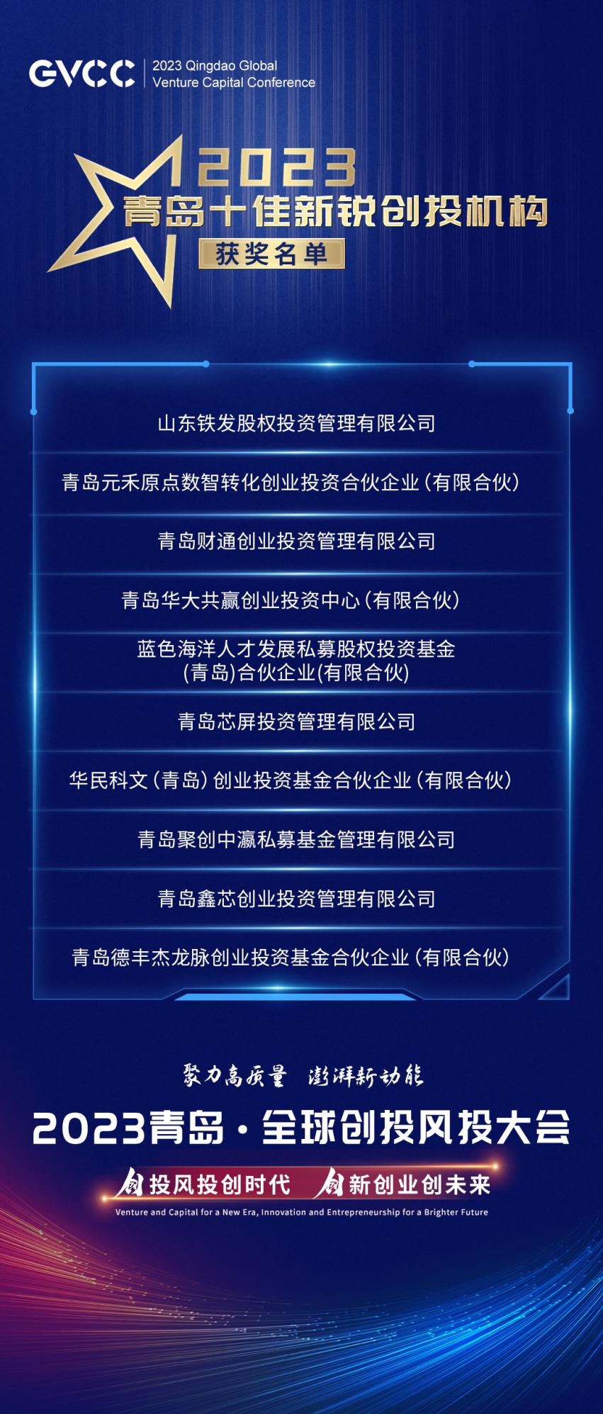大会上还发布了恒丰理财的品牌、举行中泰证券青岛区域总部揭牌、青岛资本市场服务基地启用仪式。“2023青岛十佳活跃创投机构”“2023青岛十佳新锐创投机构”“2023青岛十大资本青睐企业”三大榜单也于会上同步发布。
