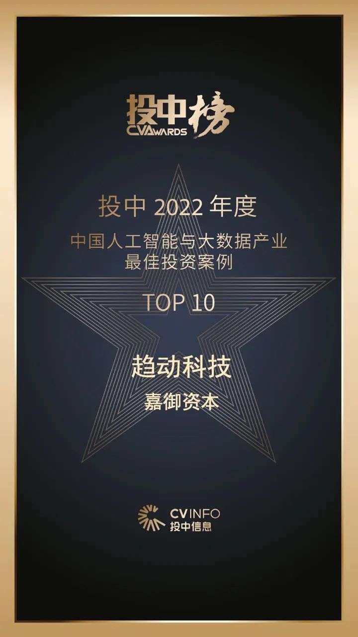 5月19日,投中信息发布了2022年度投中榜单。嘉御资本及被投企业趋动科技连获殊荣。嘉御资本荣获“投中2022年度中国最佳外资私募股权投资机构TOP50”驱动科技荣获“投中2022年度中国人工智能与大数据产业最佳投资案例TOP10”