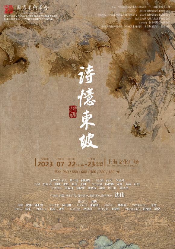 由中国东方演艺集团有限公司、中共眉山市委宣传部出品,由眉山市歌舞剧院有限责任公司联合出品,著名编导、舞蹈家、画家与视觉艺术家沈伟的最新力作,中国文物保护基金会、中国艺术研究院、北京舞蹈学院、北京画院共同支持的2023年国家艺术基金资助项目——现代舞诗剧《诗忆东坡》,于7月22日-23日在上海文化广场世界首演。来自北京、上海的多位文化专家、知名人士共同见证这场文化盛宴。